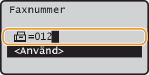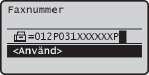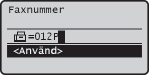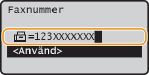 (Återkalla inställningar/Paus) för att infoga en paus i slutet av faxnumret om det är nödvändigt och tryck sedan på .Väntetiden som infogas här är fast inställd på 10 sekunder. Denna tid kan inte ändras.
