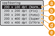 Du kan välja vilken upplösning som passar din dokumenttyp. Ju högre upplösning desto tydligare blir bilden, men desto längre tid tar det att sända den.