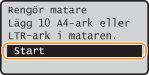 Innan du börjar rengöra ska du fylla på tio ark vanligt A4- eller Letter-papper i mataren (