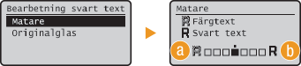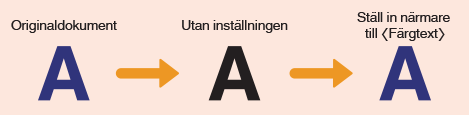Vid scanning av färgdokument kan du justera färgen för svart eller mörk text, så att den överensstämmer bättre med originaldokumentet, eller så kan du justera svart texts skärpa, så att texten blir lättare att tyda. Du kan ange separata inställningar för mataren och originalglaset.