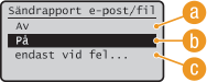 Välj alternativet om rapporten bara ska skrivas ut när sändningsfel uppstår.