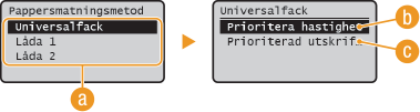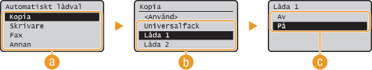 Asterisker (*)Inställningar som är markerade med "*1" är bara tillgängliga när den alternativa papperslådan (låda 2) är installerad.