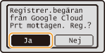 Du kan också registrera enheten från en mobil enhet eller Google Chrome*. Enhetens bildskärm visar följande bekräftelseskärm innan registreringen är klar. Tryck på <Ja> om du vill slutföra registreringen.