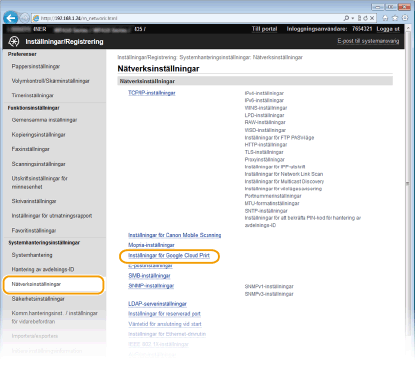Du kan inte använda Google Cloud Print från en IPv6-adress.