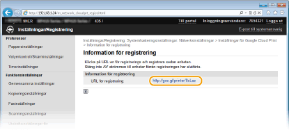 Klicka på länken för den webbadress som visas för [URL för registrering:].