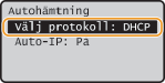 och ställer in både <Välj protokoll> och <Auto-IP> på <Av>. |