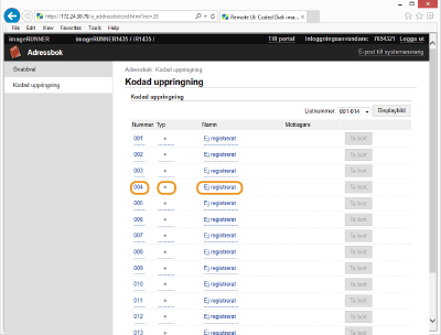 Du kan ta bort en registrerad mottagare genom att klicka på [Ta bort].