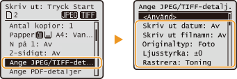 Ange utskriftsinställningar för endast JPEG-/TIFF-filer