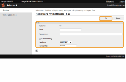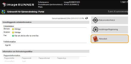 Du kan registrera eller ändra i adressboken endast när du är inloggad i systemhanteringsläget.
