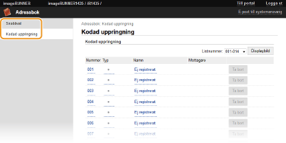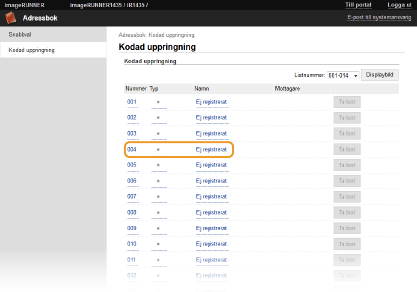 Du kan ta bort en registrerad mottagare genom att klicka på [Ta bort].