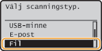 Tillgängliga mottagare för filservrar är begränsade till mottagare i adressboken. Om inga mottagare registrerats måste du registrera några i adressboken innan du scannar till en filserver.