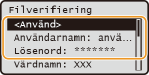Ange användarnamnet och lösenordet, välj <Använd> och tryck på