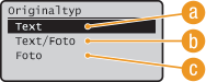 Du kan välja bildkvalitet för scanningen beroende på dokumenttypen, t.ex. dokument med bara text, dokument med diagram och kurvor eller tidskriftsfoton.