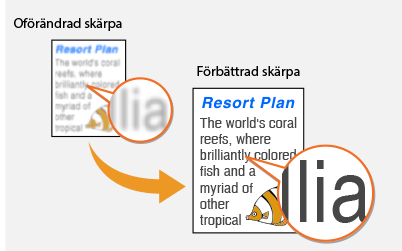 Du kan justera den scannade bildens skärpa. Öka skärpan för att skärpa suddig text och suddiga linjer, och minska skärpan för att förbättra tidskriftsfoton.