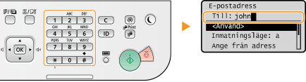 Använd sifferknapparna på manöverpanelen för att ange mottagare.