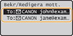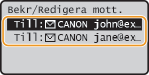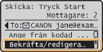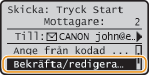 Välj <Bekräfta/redigera mottagare> och tryck på