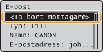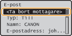 / för att växla mellan mottagare som du har angett. Visa en mottagare som du vill ta bort <Ja> . |