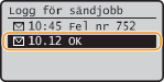 Om <Visa jobblogg> är inställt på <Av> kan du inte kontrollera loggarna för avsända dokument.