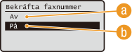Visa skärmen för kontroll av faxnummer (Endast imageRUNNER 1435iF)