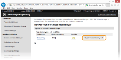 Klicka på [Registrera standardnyckel] till höger om det nyckelpar som du vill använda för klientautentiseringen.