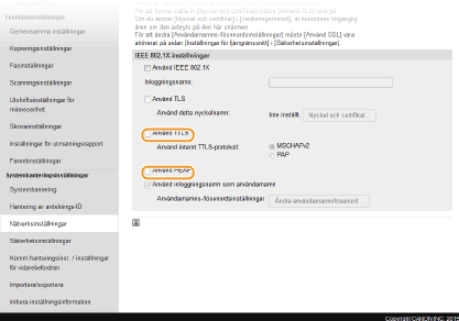 Markera kryssrutan [Använd TTLS] eller [Använd PEAP].