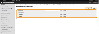[Ändra lösenord] Om du vill ställa in eller ändra lösenordet markerar du kryssrutan och anger upp till 24 alfanumeriska tecken för det nya lösenordet både i textrutan [Lösenord:] och [Bekräfta:].