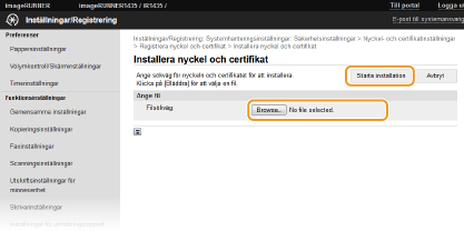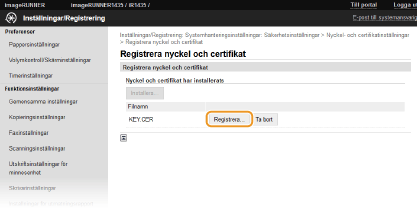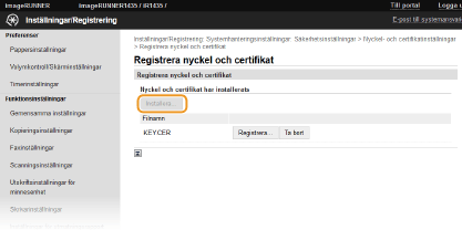 Klicka på [Registrera nyckel och certifikat] eller [Registrera CA-certifikat].