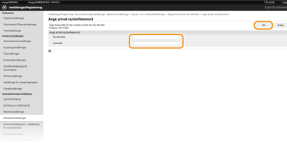[Nyckel- och certifikatinställningar] (för nyckelpar) eller [CA-certifikatinställningar] (för CA-certifikat).