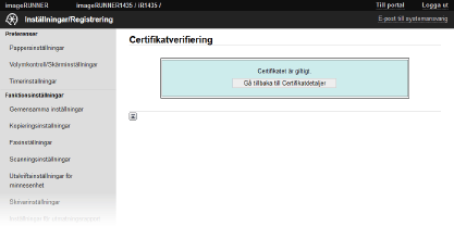 Resultatet från verifieringen av certifikatet visas enligt nedan.