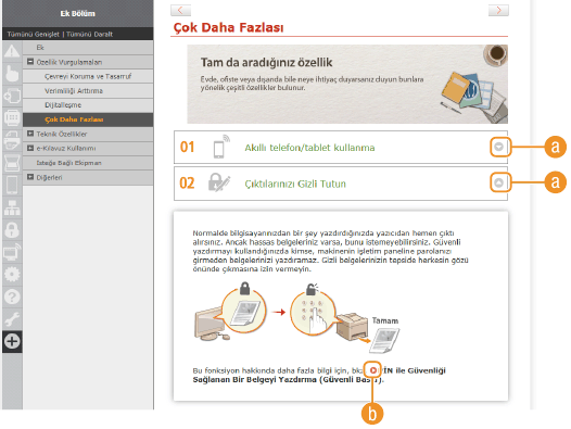 e-Kılavuz ürününün nasıl görüntülendiğine, nasıl arama yapılacağına ilişkin bilgileri ve diğer bilgileri görüntülemek için tıklayın.