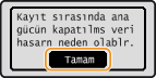 Makineyi kapatın, en az 10 saniye bekleyin ve yeniden açın.
