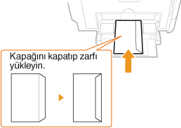 Bu bölüm zarfları doğru yönde ve yüzde nasıl yükleneceğini ve aynı zamanda zarfları yüklemeden önce tamamlamanız gereken prosedürleri anlatmaktadır. Çok amaçlı tepsiye zarf yüklemeye ilişkin genel prosedürün açıklaması için, bkz. Çok Amaçlı Tepsiye Kağıt Yükleme.