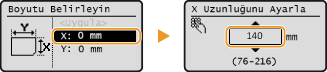 tuşuna basın. / veya sayı tuşlarını kullanarak <X> tarafının uzunluğunu girin ve seçeneğine basın.![]() |