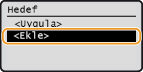 tuşlarını kullanarak <Yeni Hedefi Adres Defterine Kaydet> seçeneğini seçin ve