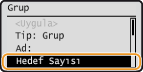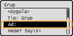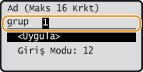 Sayı tuşlarını kullanarak grup adını girin, <Uygula> seçeneğini seçin ve
