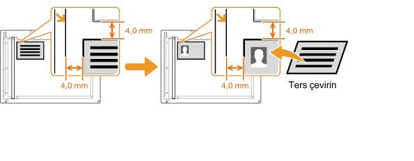 Bir kartın ön ve arka yüzlerini, bir sayfanın aynı yüzüne kopyalamak için <Kimlik Kartı Kopyalama> seçeneğini kullanabilirsiniz. Bu işlev, ehliyet veya kimlik kartı kopyalanırken kullanışlıdır.