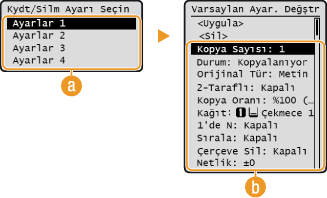 <Ayarlar 1> ila <Ayarlar 4> seçeneğini seçin