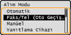 <Faks/Tel (Oto Geçiş)> seçeneğini seçerken