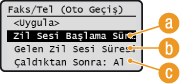 Makineyi, gelen arama zili belirtilen bir zaman dilimi içinde çaldığında, faksları otomatik olarak alacak şekilde ayarlayabilirsiniz. Oto Alıma Geç