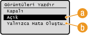 <Açık> veya <Sadece Hata Oluştuğunda> seçeneğini seçin