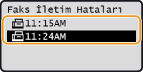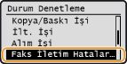 tuşlarını kullanarak <Faks İletim Hataları> seçeneğini seçin ve