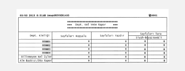 Departman Kimliği Yönetimi etkinleştirildiğinde, her bir Departman Kimliği için kopyalanan, yazdırılan ve taranan toplam sayfa sayısını kontrol etmek için bir rapor yazdırabilirsiniz. Rapor kullanımı denetlemenizi ve yönetimi geliştirmenizi sağlar.