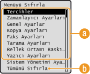 <Ağ Ayarları> ve <Sistem Yönetimi Ayarları> ayarlarının nasıl geri döndürüleceği hakkındaki talimatlar için, bkz. Sistem Yönetimi Ayarlarının Sıfırlanması.