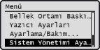 Sistem Yönetim Ayarları ile ilgili tüm ayarlar, kısa açıklamalarla birlikte listelenir. Varsayılan ayarlar kama ile işaretlenmiştir (