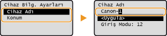 <Cihaz Adı> veya <Konum> girin (Metin Girme)