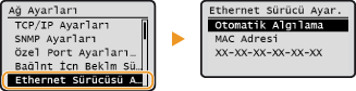 tuşlarını kullanarak <Ağ Ayarları> seçeneğini seçin ve
