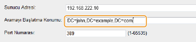 Düğüm belirtirken, "DC=" öğesini ve ardından bir ana bilgisayar adı (Active Directory etki alanı adında noktalarla sınırlandırılmış bir karakter dizesi) girin ve girişlerin her birini virgülle ayırın. Örneğin, etki alanı adı "can.example.com" ise, "DC=can,DC=example,DC=com" girişini yapın.