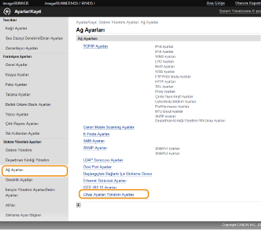* iW Management Console hakkında daha fazla bilgi için, yerel yetkili Canon satıcısı ile temas kurun.