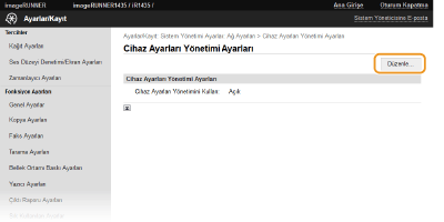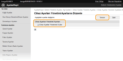 [Cihaz Ayarları Yönetimi Ayarları] seçeneğine tıklayın.