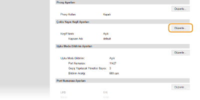 Multicast discovery için bağlantı noktası numarasını değiştirmek için bkz. Bağlantı Noktası Numaralarını Değiştirme.